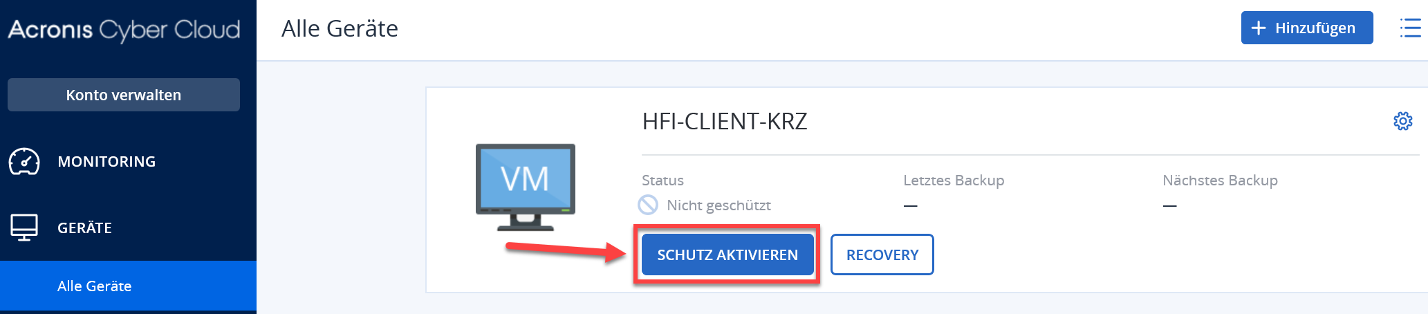 Klicken Sie auf der linken Seite auf "Alle Geräte" und anschliessend beim entsprechenden Gerät auf "Schutz aktivieren".