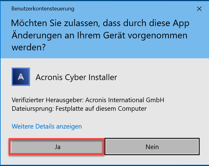 5. Falls Sie eine Meldung von der "Benutzerkontensteuerung" erhalten, klicken Sie auf "Ja".