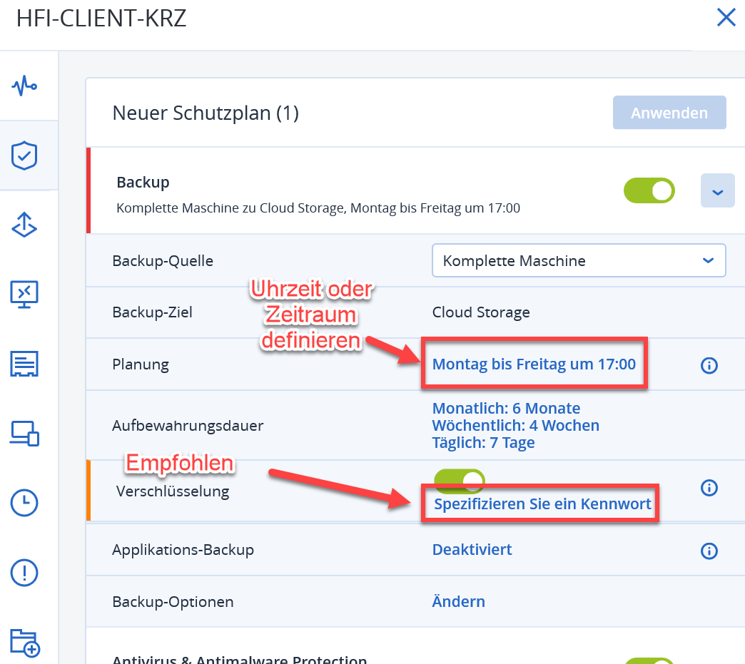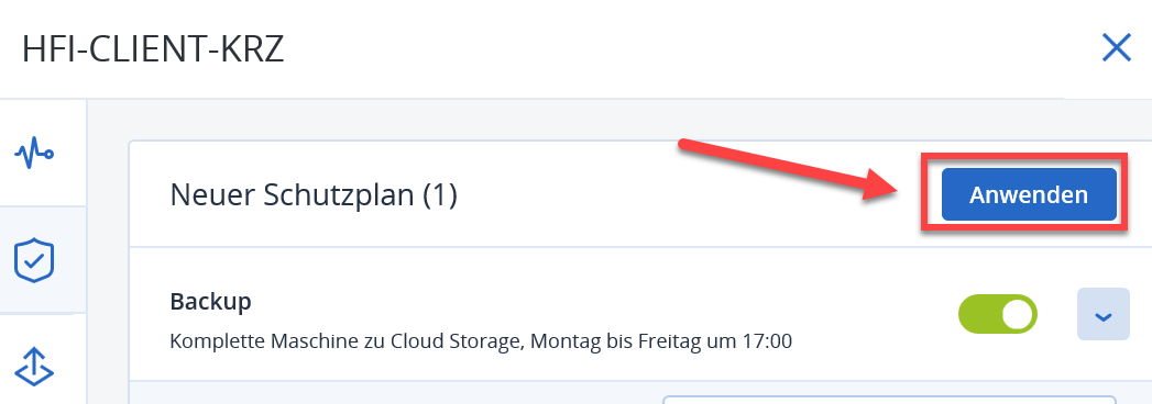 Klicken Sie nun auf "Anwenden" um den Schutzplan zu speichern.