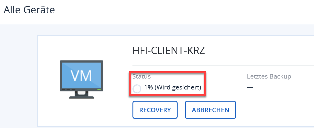 Sie sollten nun den Fortschritt der Sicherung sehen können.