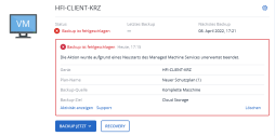 Falls Sie eine Fehlermeldung wie unten im Bild angezeigt erhalten, bitten wir Sie das Gerät neu zu starten und das Backup erneut zu starten.