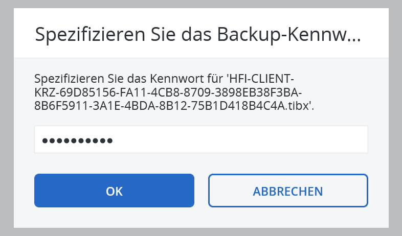 Falls Sie das Backup mit einem Passwort verschlüsselt haben, werden Sie nun nach dem Passwort gefragt. Geben Sie Ihr Passwort ein und Klicken Sie auf "OK".