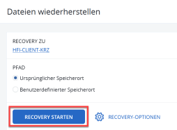 In diesem Schritt können Sie auswählen, ob Sie die Datei am ursprünglichen oder an einem anderen Speicherort wiederherstellen möchten. Fahren Sie mit "RECOVERY STARTEN" fort.